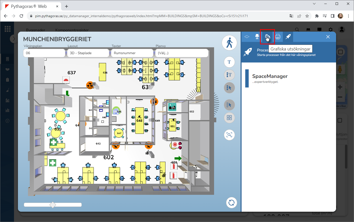 Klicka på "Grafiska utsökningar" enligt den första eller andra bilden nedan. När du klickar på "Grafiska utsökningar" kommer utsökningskommandot att aktiveras och utsökningsfältet att ritas om. När utsökningsfältet har ritats om får du tillgång till en lista med grafiska utsökningar du kan göra (se den tredje bilden nedan).