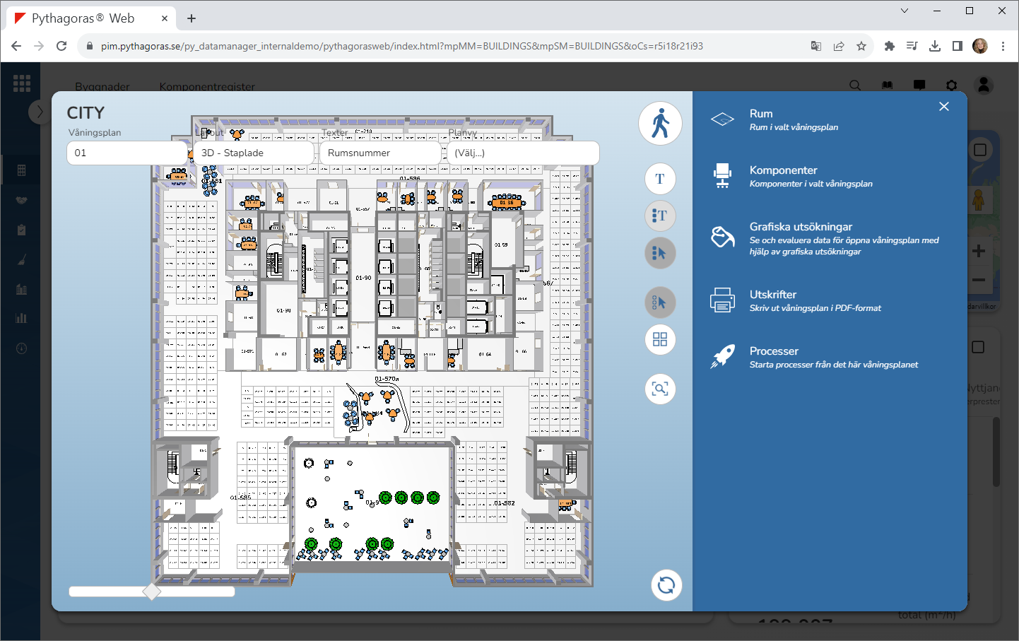När du har öppnat ett våningsplan får du tillgång till dess våningsplanskort (se bilden nedan).