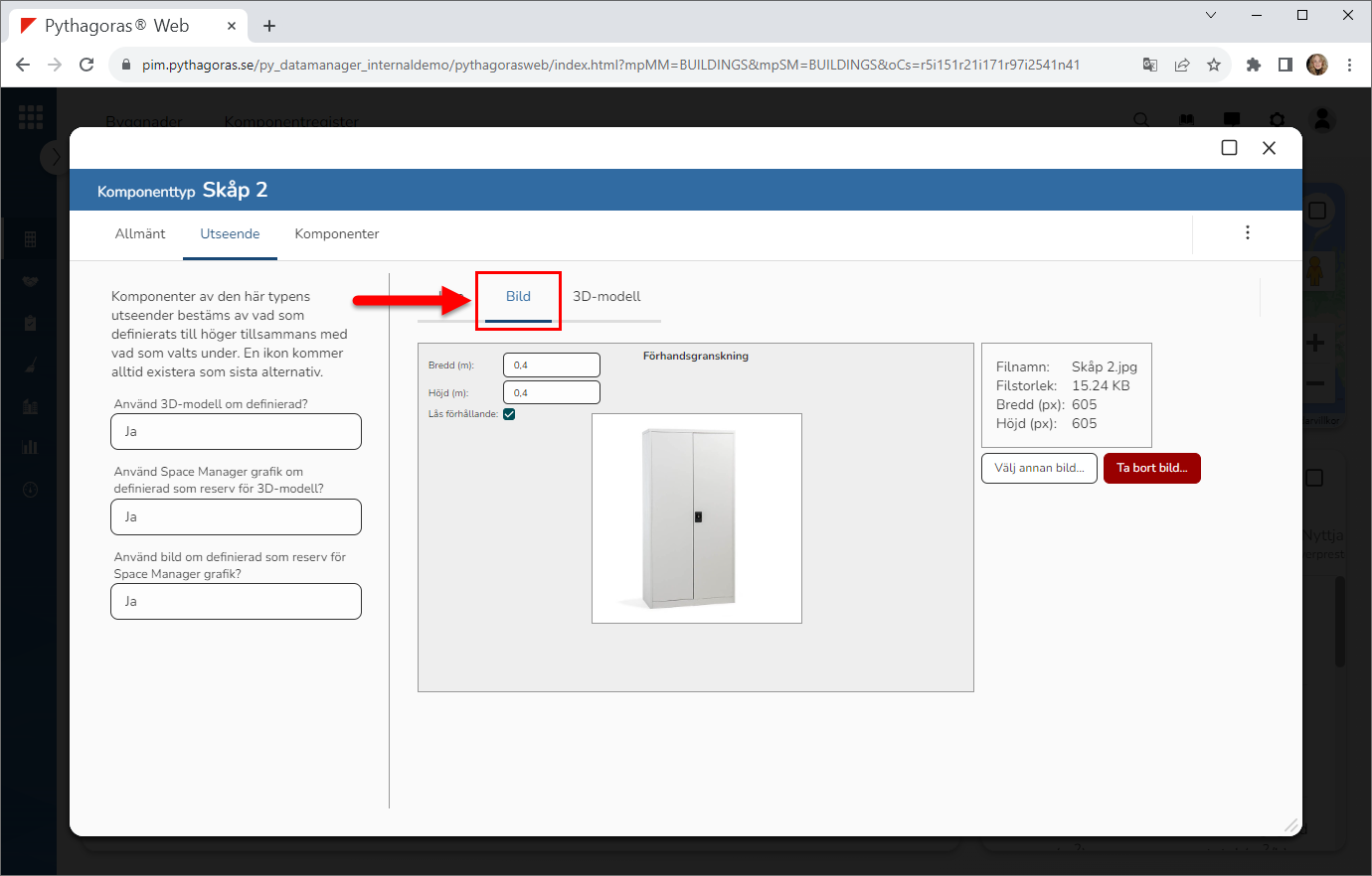 Byt bild för den komponenttyp du arbetar med. Detta genom att