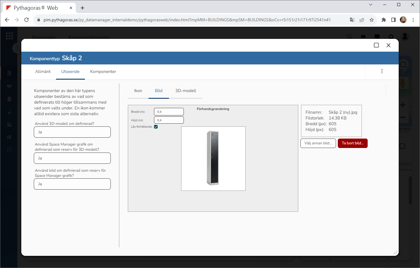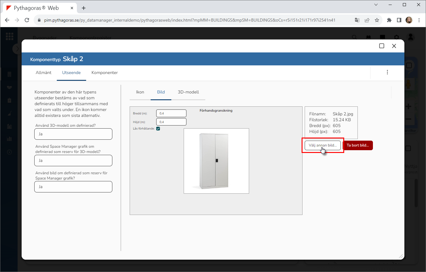 För att byta bild för en komponenttyp, gör du så här: