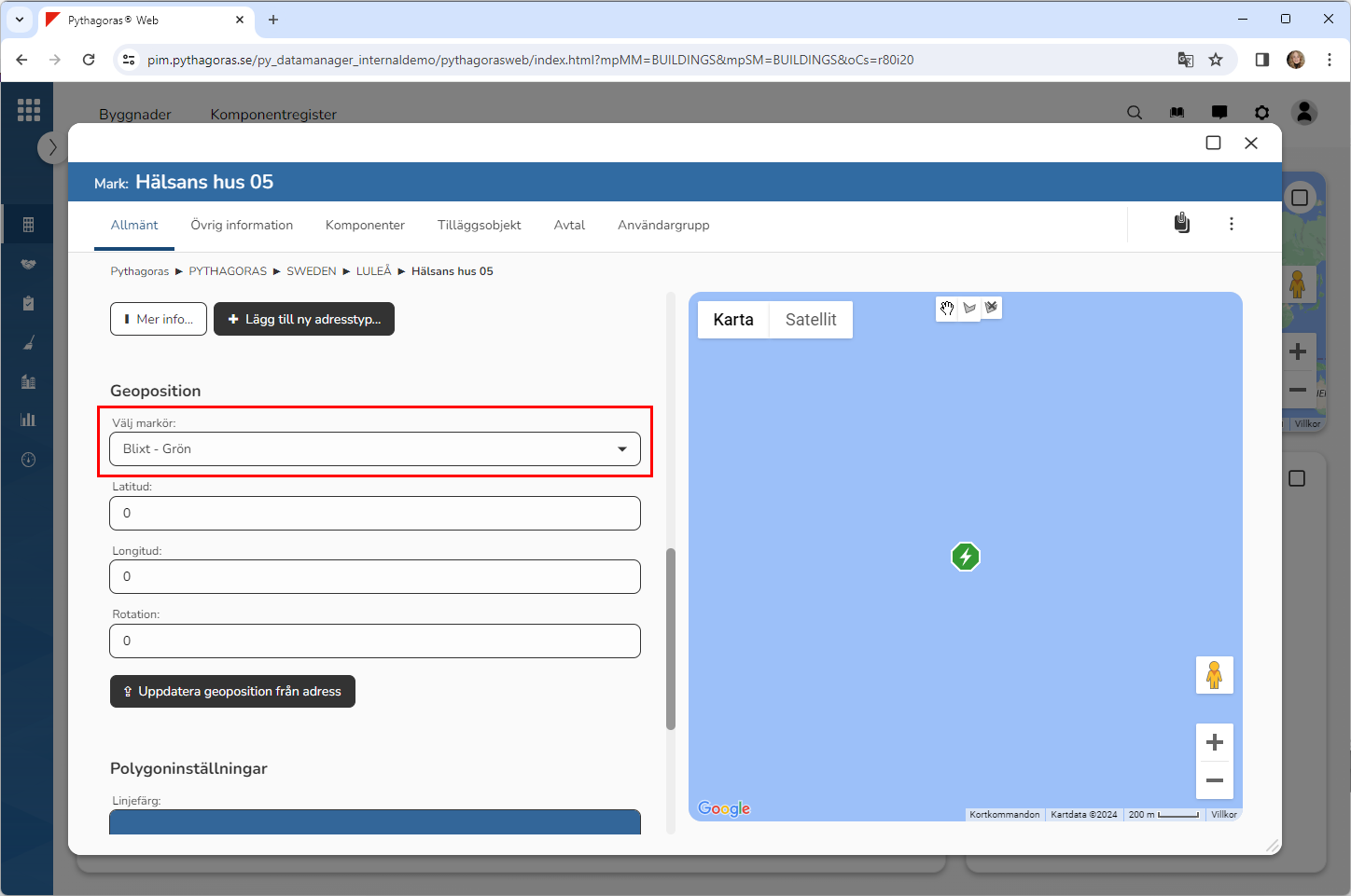 Byt kartmarkör för det markobjekt du arbetar med (se bilden nedan). Detta genom att klicka i fältet med namnet "Välj markör" och sedan klicka på en ny kartmarkör i den lista du får tillgång till.