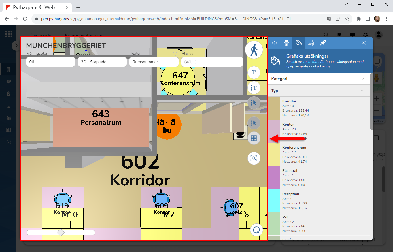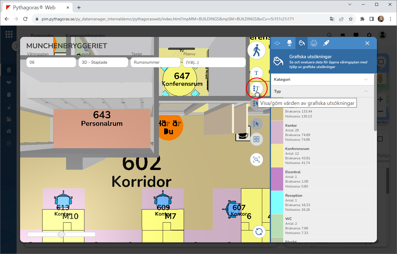 Klicka på ikonen med namnet "Visa/göm värden av grafiska utsökningar" (se den första bilden nedan). När du klickar på ikonen med namnet "Visa/göm värden av grafiska utsökningar" kommer de värdenamn som genererats av den grafiska utsökning du har gjort, gömmas i modellen (se den andra bilden nedan).