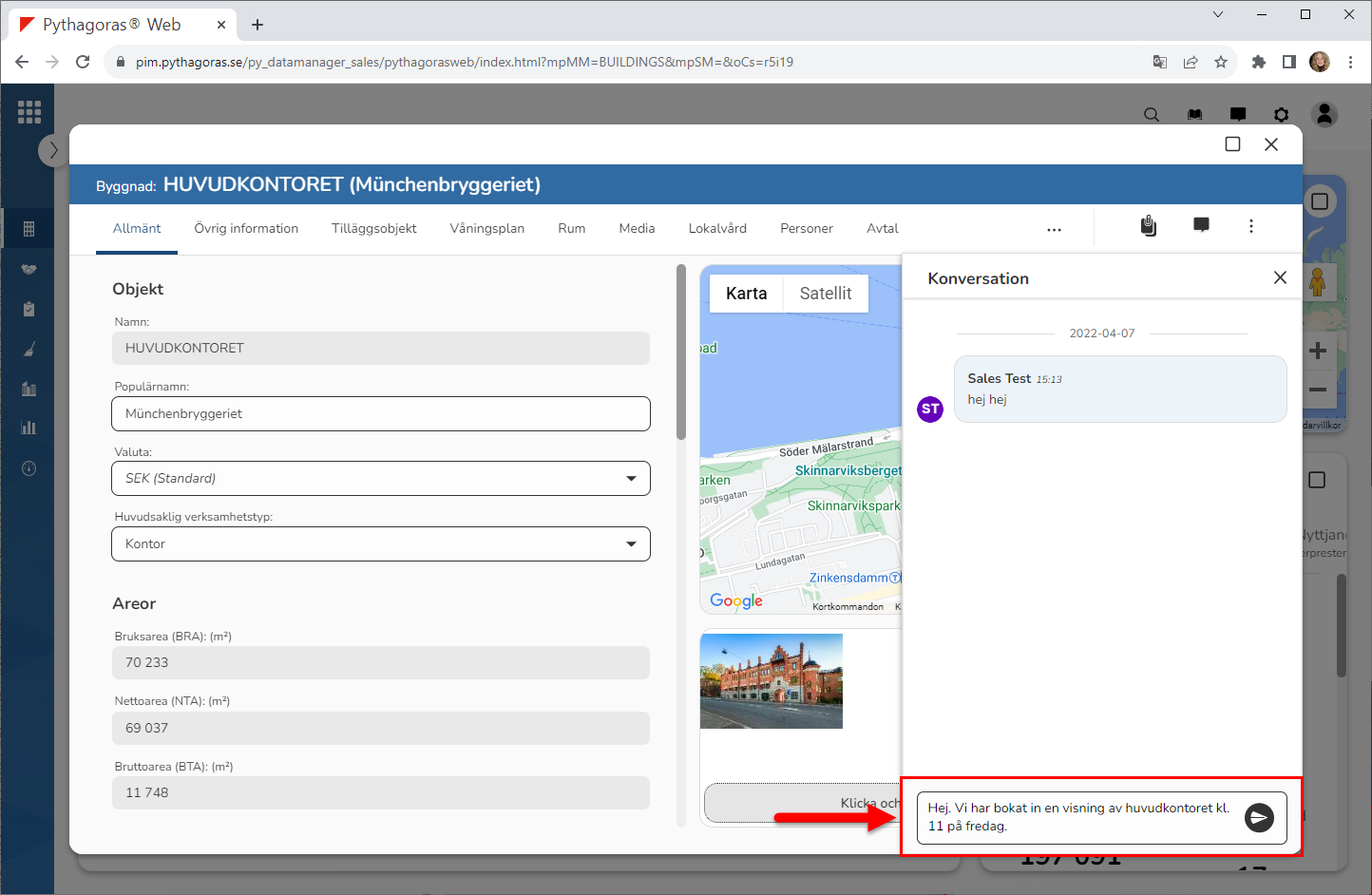 Klicka på Konversationsikonen (se den första bilden nedan). När du klickar på Konversationsikonen får du tillgång till ett konversationsfönster (se den andra bilden nedan).
