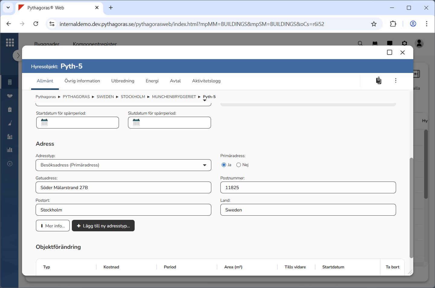 Öppna ett hyresobjekt. För mer information om hur du öppnar ett hyresobjekt, se avsnitt 11.1.