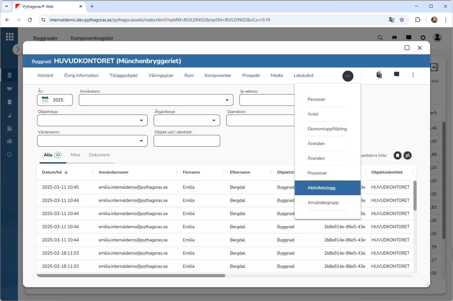 8.15.1. Öppna aktivitetsloggen för en byggnad