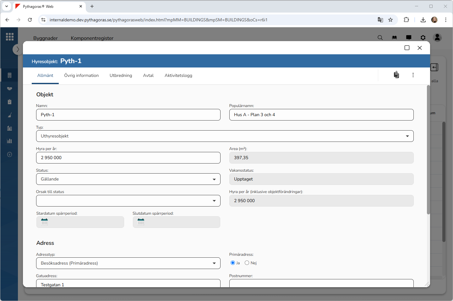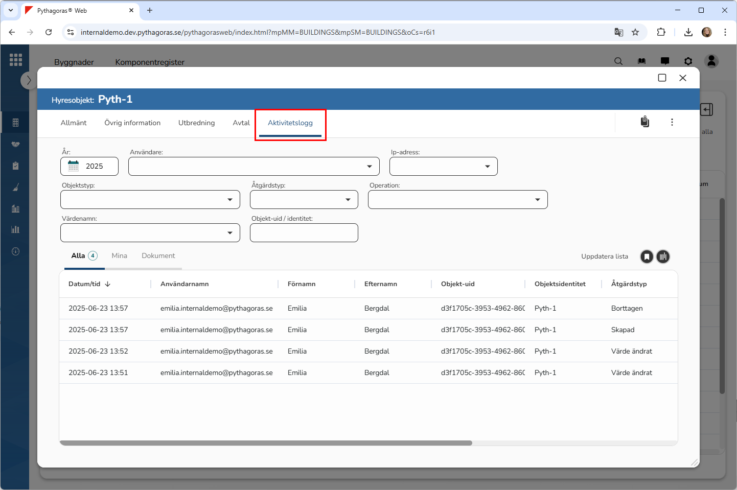 11.7.1. Öppna aktivitetsloggen för ett hyresobjekt
