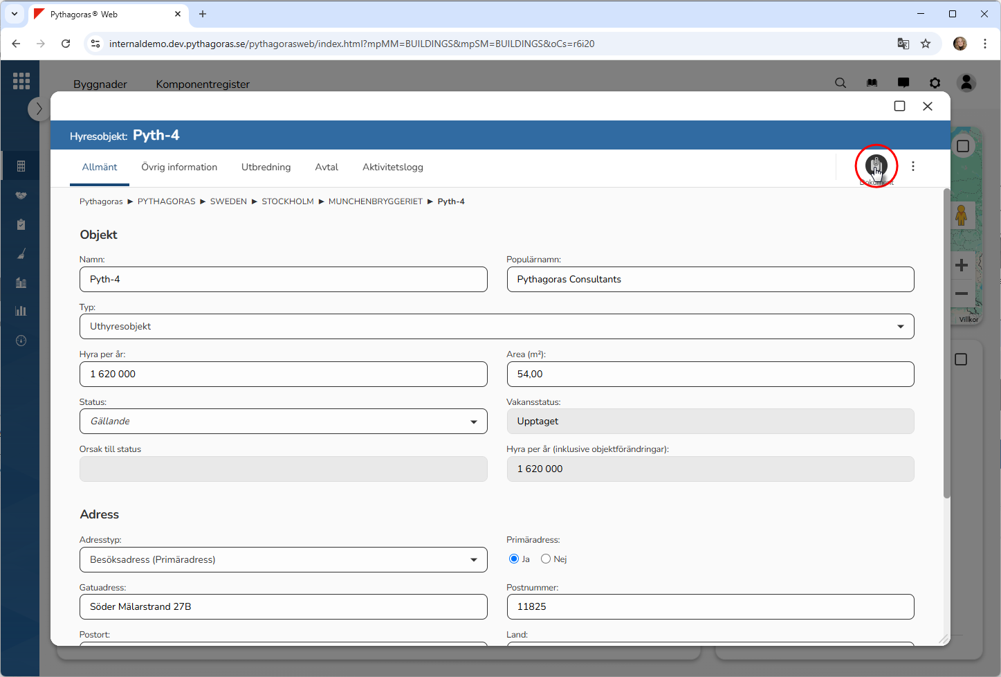 11.8. Öppna dokumenthanteraren via ett hyresobjekt