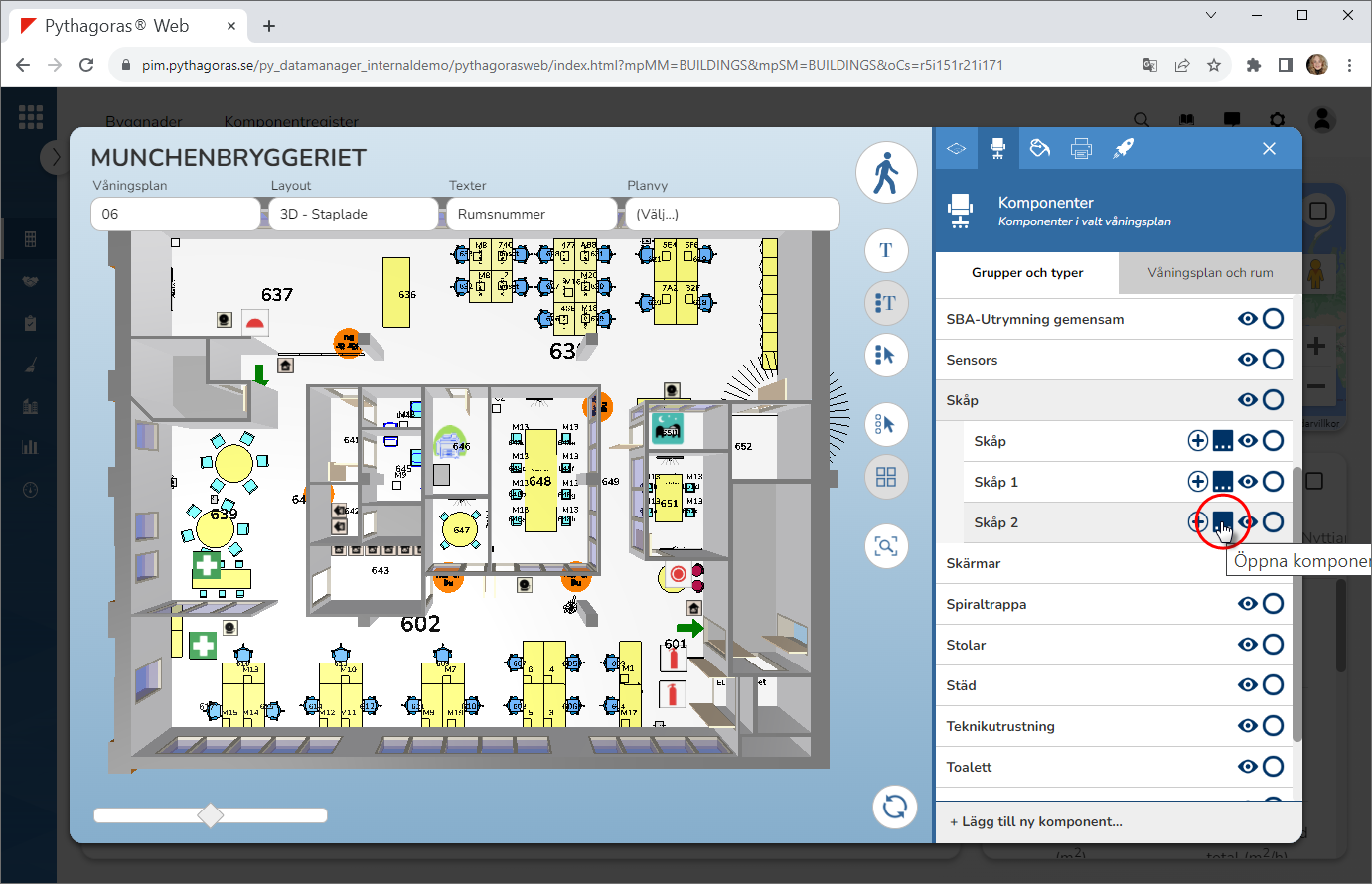 Gå till den komponenttyp du vill öppna (se bilden nedan). Detta genom att arbeta dig ner i strukturen i listan med komponentgrupper och komponenttyper.