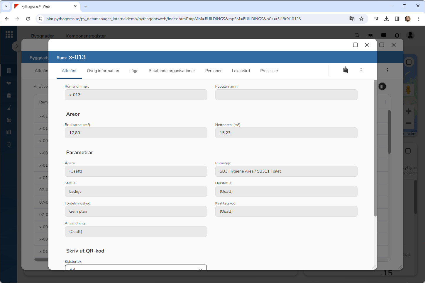 6. Klicka på det rum du vill öppna (se den första bilden nedan). Notera att det rum du klickar på kommer att öppnas. När ett rum öppnas får du tillgång till dess rumskort (se den andra bilden nedan). Via rumskortet kan du bland annat granska och sätta information på ett rum.
