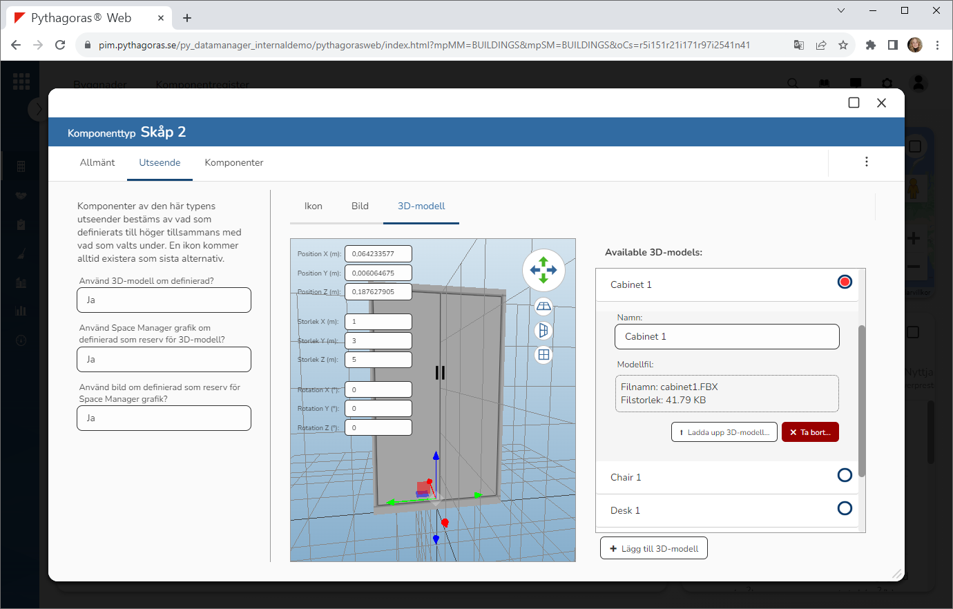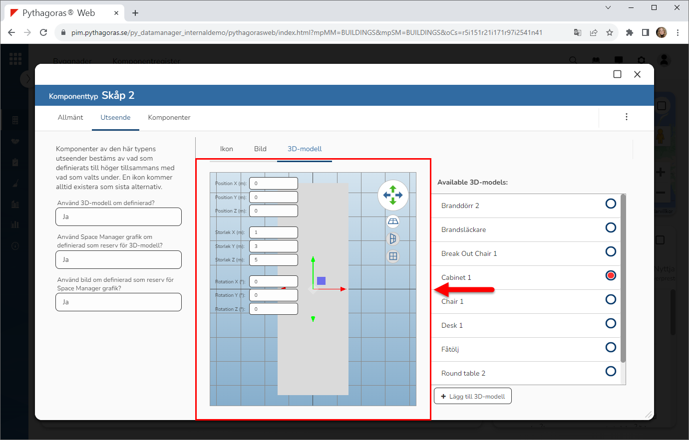 För att redigera 3D-modellen för en komponenttyp, gör du så här: