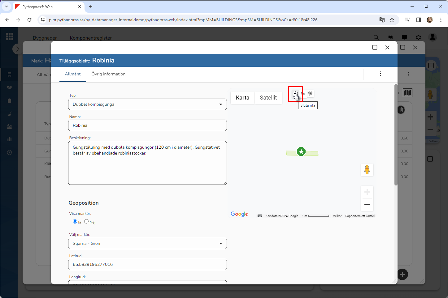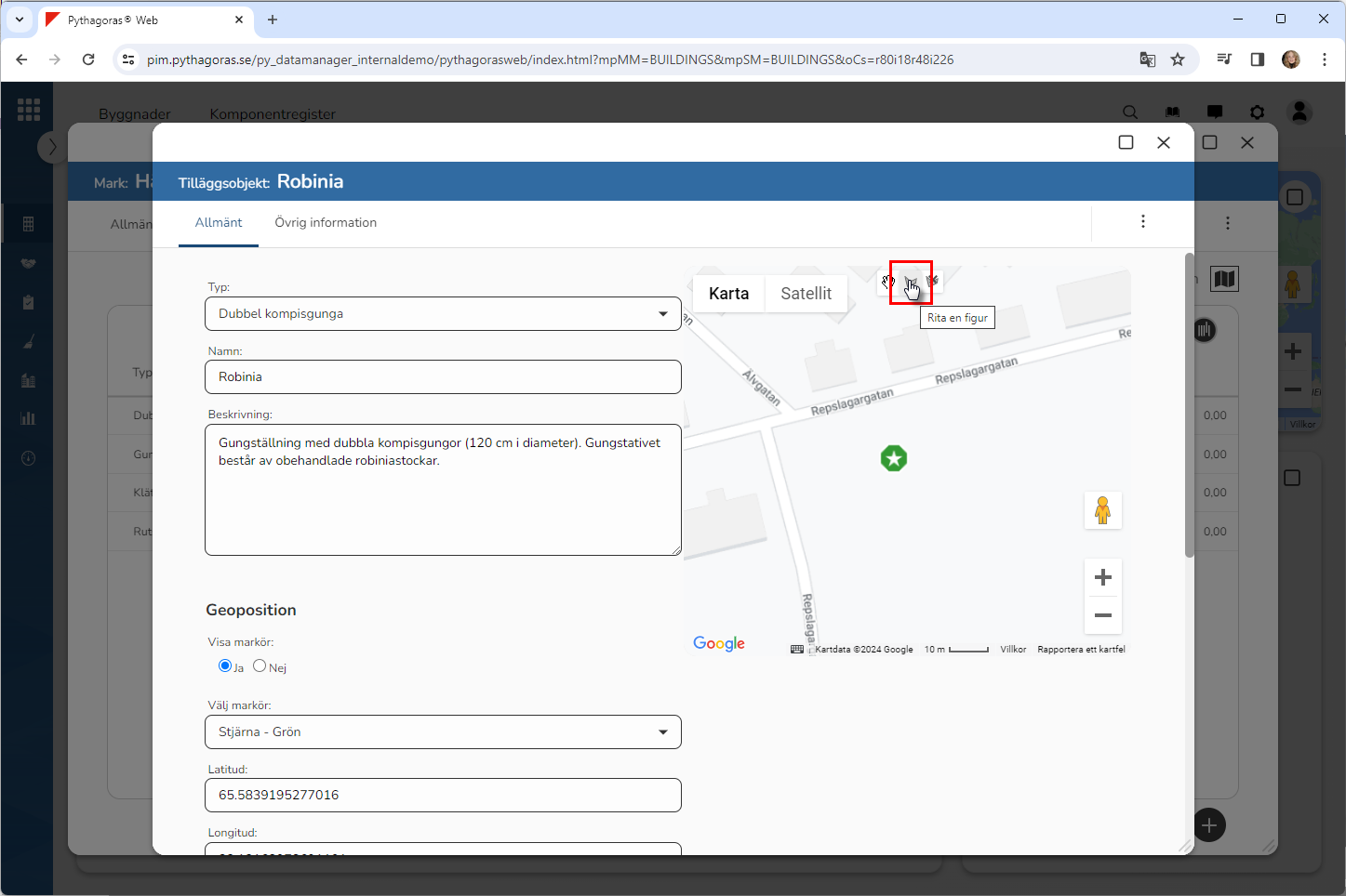 För att rita in en polygon på kartan, gör du så här: