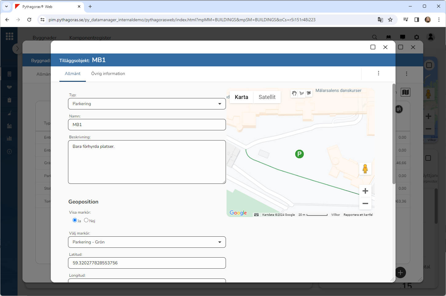 Ställ dig på fliken med namnet "Övrig information" (se bilden nedan). Under fliken med namnet "Övrig information" hittar du den övriga information du kan sätta på det tilläggsobjekt du arbetar med.