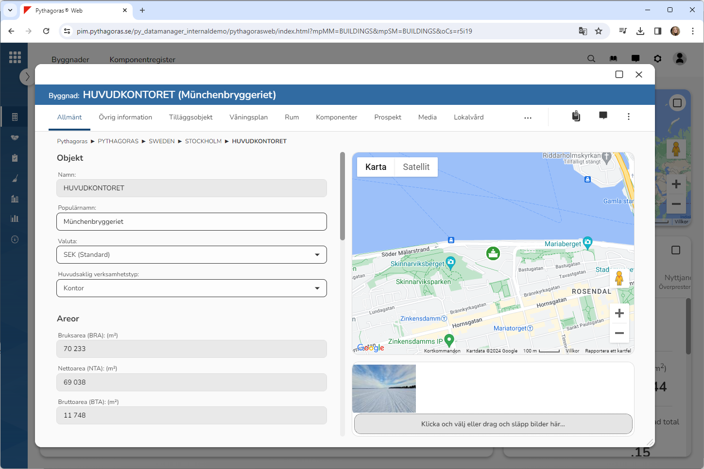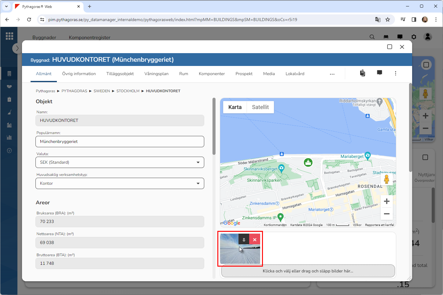 Öppna den byggnad vars byggnadskort du vill ta bort en bild från. För mer information om hur du öppnar en byggnad, se avsnitt 4.6.1., 5.4.3. eller 6.1.1.