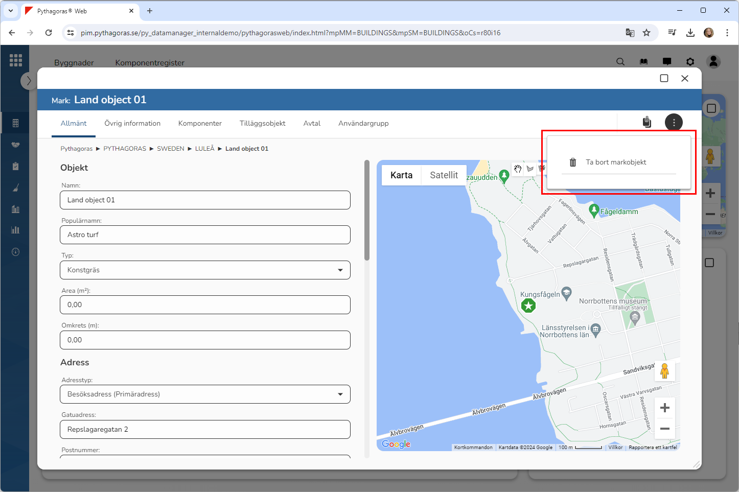 Öppna det markobjekt du vill ta bort från Pythagoras webb. För mer information om hur du öppnar ett markobjekt, se avsnitt 10.1.