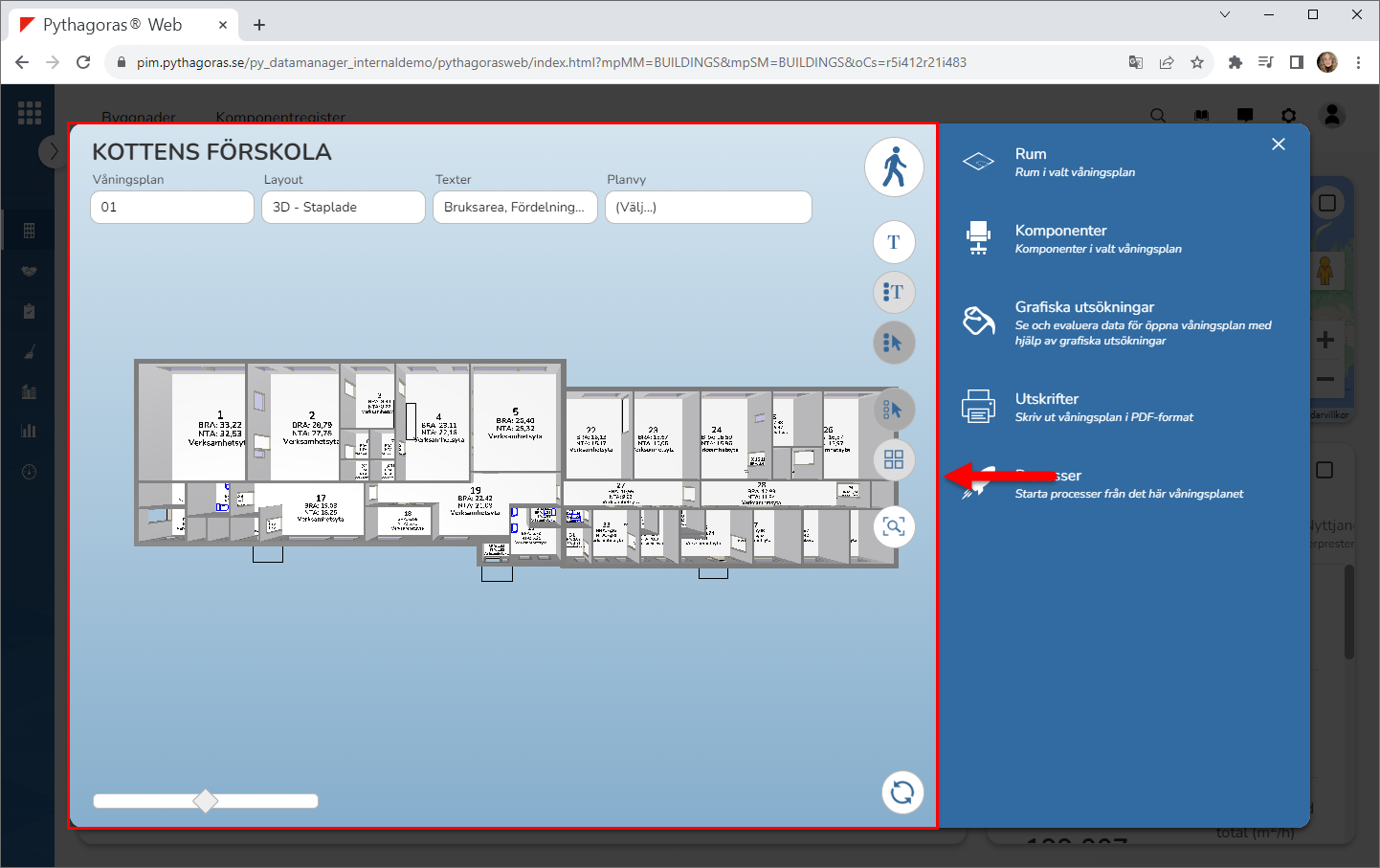 Ta bort en eller fler rumstexter från modellen (se bilden nedan). Detta genom att placera din muspekare i fältet med namnet "Texter" och sedan avmarkera en eller fler rumstexter i den lista du får tillgång till.