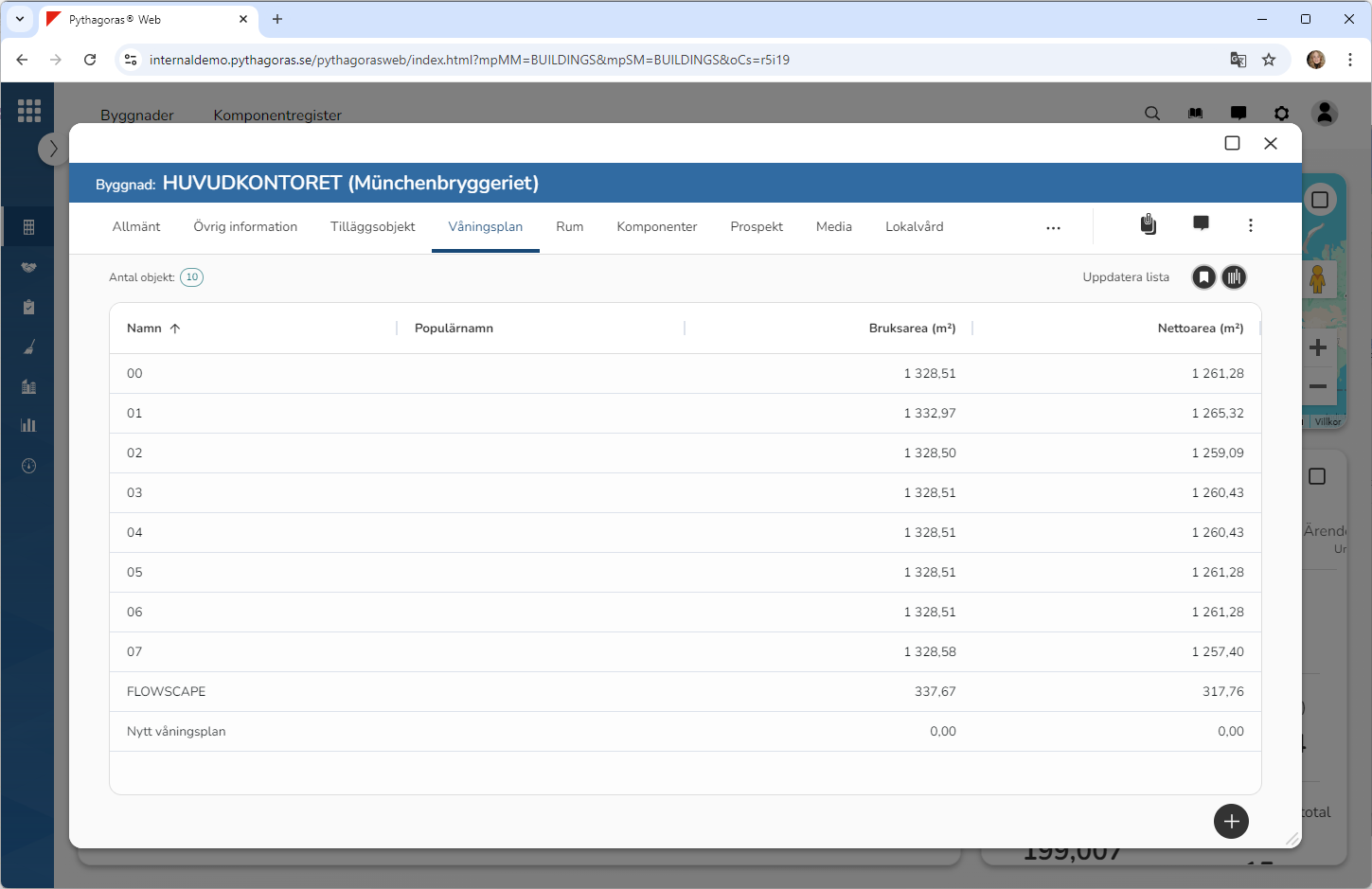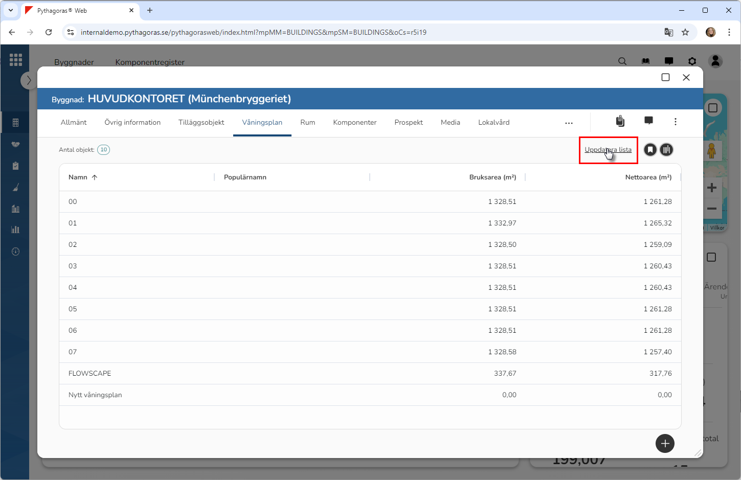 Klicka på "Uppdatera lista" (se den första bilden nedan). När du klickar på "Uppdatera lista" kommer våningsplanslistan att uppdateras (se den andra bilden nedan).