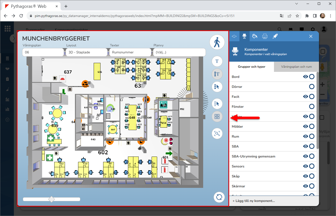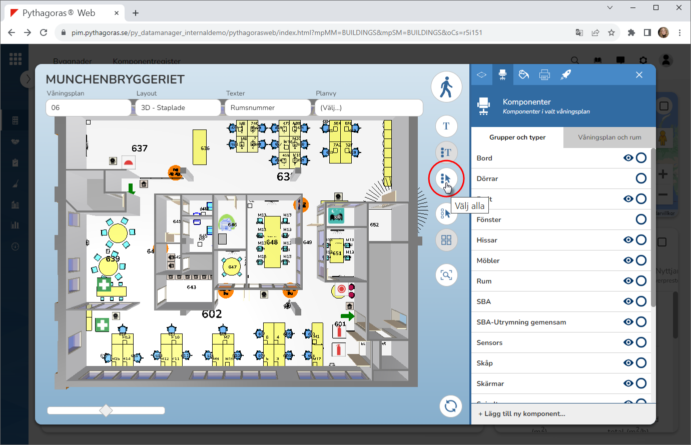 För att välja komponenter via ikonen med namnet "Välj alla", gör du så här: