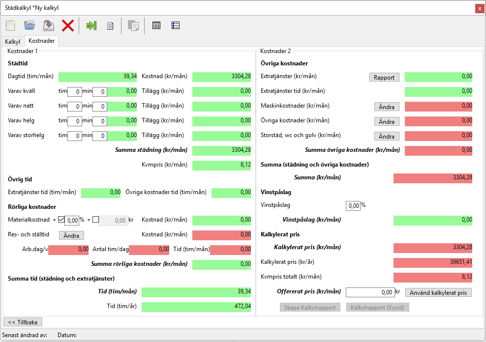För mer information om städkalkylens knappar, se avsnitt 2.2.1.1.