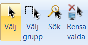 Observera! Placera-knappen och Sätt-knappen kan inte vara aktiverade samtidigt. Om Placera-knappen är aktiverad kommer Sätt-knappen med andra ord vara inaktiverad. För att aktivera Sätt-knappen måste du välja ett eller fler rum i modellen. För att välja rum arbetar du antingen med Välj-knappen eller Välj grupp-knappen Rum-kategorin (se bilden nedan).