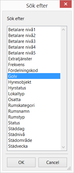 I färgnyckeln hittar du rutan Sök typ. Med hjälp av Sök typ-rutan kan du välja en golvtyp genom att söka efter den aktuella golvtypen i färgnyckeln. Att välja en golvtyp med hjälp av Sök typ-rutan kan vara fördelaktig om färgnyckeln innehåller så många golvtyper att det blir svårt för dig att hitta den golvtyp du vill placera eller sätta i modellen.