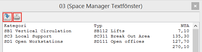 Med knappen Skapa PDF kan du skapa en pdf-utskrift av det våningsplan du arbetar med, och med knappen Lägg till klippbordet kan du lägga en del av modellen till klippbordet. Den modelldel du lägger till klippbordet kan sedan du klistra in i andra kanaler, till exempel i mejl eller liknande. För mer information om hur du skapar en pdf-utskrift av det våningsplan du arbetar med, se underrubriken "Utskrifter", nedan, och för mer information om hur du lägger en del av modellen till klippbordet, se underrubriken "Lägg till klippbordet", nedan.