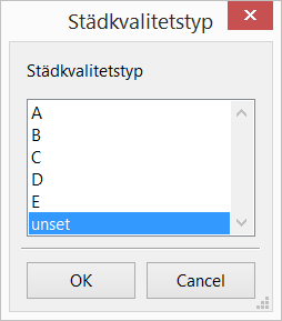 • välj den städnivå du vill sätta i rummet genom att klicka på den aktuella städnivån i dialogrutan: