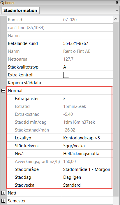 4. avsluta med att klicka OK i botten av dialogrutan – du har nu satt det städområde du valt i det rum vars städinformationsmeny du valt att visa och du kommer nu kunna se det städområde du valt i informationsraden "Städområde" (se bilden nedan).