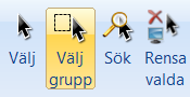Observera! Placera-knappen och Sätt-knappen kan inte vara aktiverade samtidigt. Om Placera-knappen är aktiverad kommer Sätt-knappen med andra ord vara inaktiverad. För att aktivera Sätt-knappen måste du välja ett eller fler rum i modellen. För att välja rum arbetar du antingen med Välj-knappen eller Välj grupp-knappen Rum-kategorin (se bilden nedan).