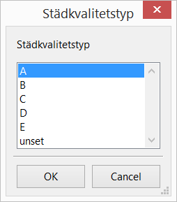 • välj den städnivå du vill sätta i rummet genom att klicka på den aktuella städnivån i dialogrutan: