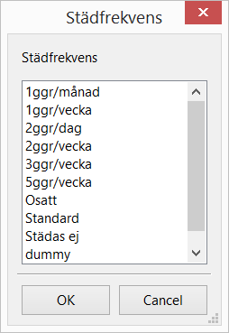 hur ofta varje enskilt rum ska städas, till exempel fem gånger i veckan, tre gånger i veckan, en gång i månaden eller städas ej