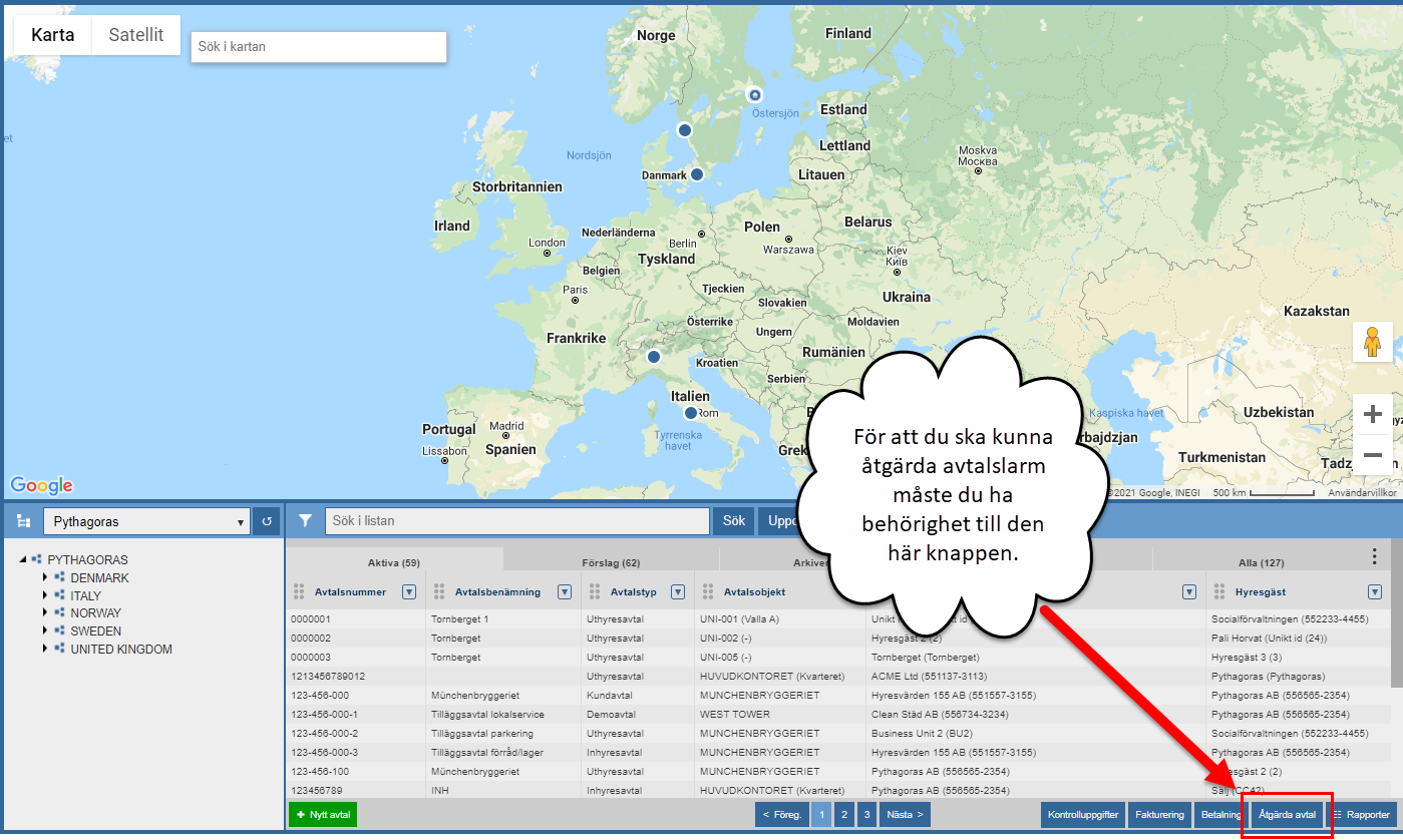 För att du ska kunna åtgärda avtalslarm måste du ha behörighet till knappen med namnet "Åtgärda avtal" (se bilden nedan). Om du inte har behörighet till knappen med namnet "Åtgärda avtal" kan du inte åtgärda avtalslarm. Om du har behörighet till knappen med namnet "Åtgärda avtal" är knappen blå till färgen. Om du inte har behörighet till knappen med namnet "Åtgärda avtal" är knappen grå till färgen. Om du inte har behörighet till knappen med namnet "Åtgärda avtal" kan du hoppa över de avsnitt som handlar om hur du åtgärdar avtalslarm.