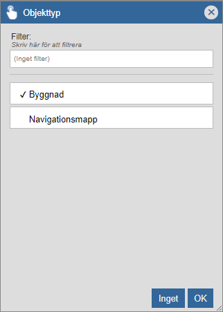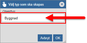Klicka i fältet med namnet "Objekttyp" (se den första bilden nedan). När du klickar i fältet med namnet "Objekttyp" får du tillgång till en lista med objekttyper (se den andra bilden nedan).