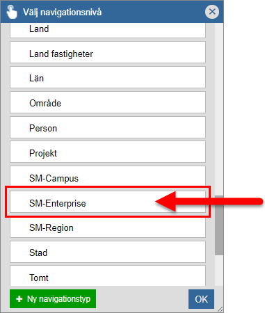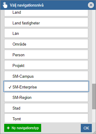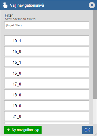 Välj en navigationsnivå genom att klicka på en navigationsnivå i listan med navigationsnivåer (se den första bilden nedan) . Notera att den navigationsnivå du väljer kommer att markeras med en bock (se den andra bilden nedan).