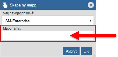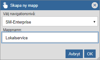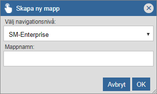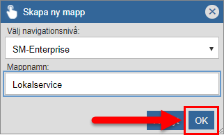 Klicka "OK" i dialogrutan med namnet "Välj typ som ska skapas" (se den första bilden nedan). När du klickar "OK" i dialogrutan med namnet "Välj typ som ska skapas" får du tillgång till en dialogruta med namnet "Skapa ny mapp". I dialogrutan med namnet "Skapa ny mapp" hittar du två fält: "Välj navigationsnivå" och "Mappnamn" (se den andra bilden nedan).