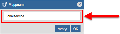 Klicka i fältet med namnet "Mappnamn" (se den första bilden nedan). När du klickar i fältet med namnet "Mappnamn" får du tillgång till en dialogruta med namnet "Mappnamn" (se den andra bilden nedan).