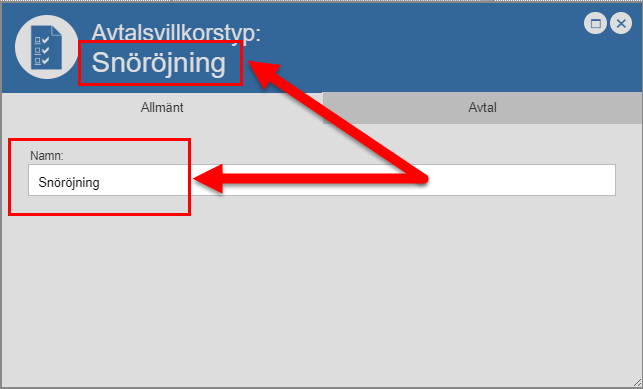 klicka "OK" (se den första bilden nedan). När du klickar "OK" i dialogrutan med namnet "Namn" skickas du tillbaka till villkorstkortet. I villkorskortet ser du vilket namn du satt på den villkorstyp du lagt till i Pythagoras avtal (se den andra bilden nedan).