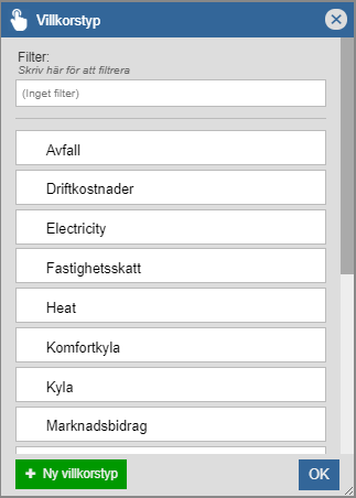 Öppna listan med villkorstyper som finns registrerade i Pytagoras Avtal. Detta genom att