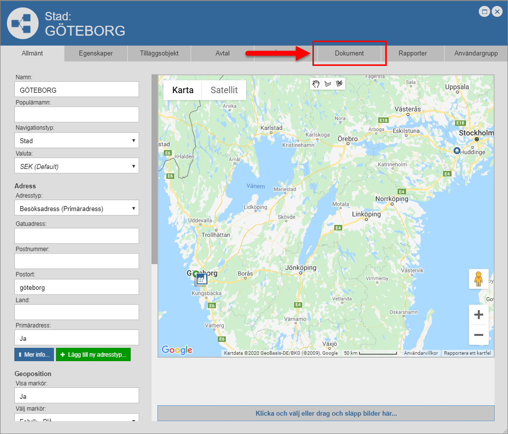 Ställ dig på fliken med namnet "Dokument" (se den första bilden nedan). När du ställer dig på fliken med namnet "Dokument" får du tillgång till dokumenthanteraren (se den andra bilden nedan).