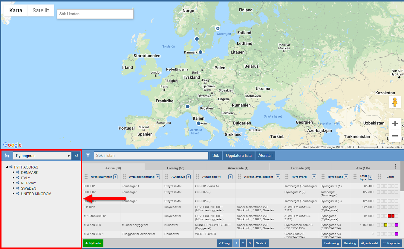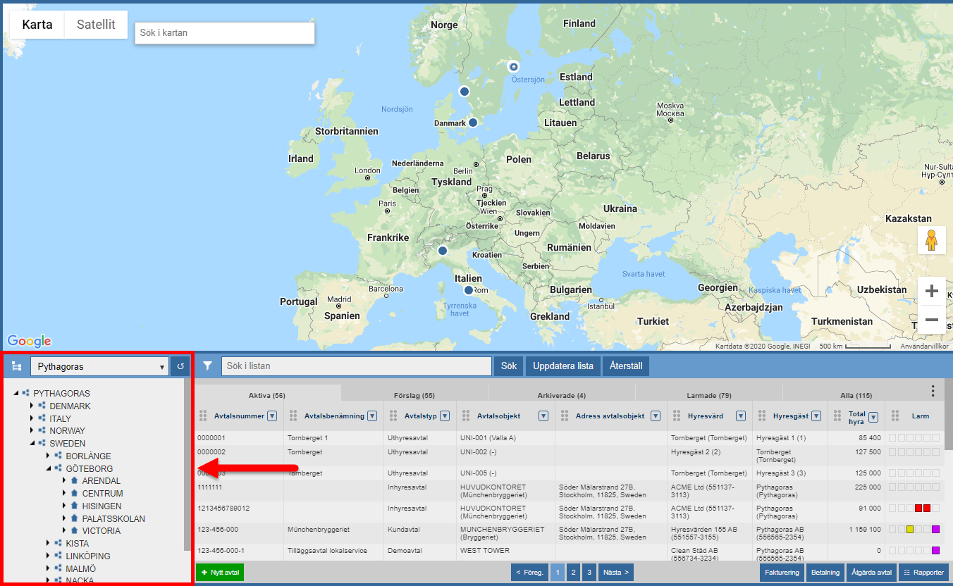 Arbeta dig ner till en byggnad. För att du ska kunna nå dokumenthanteraren via en person måste den byggnad personen är placerad i vara synlig i navigationsträdet (se bilden nedan).