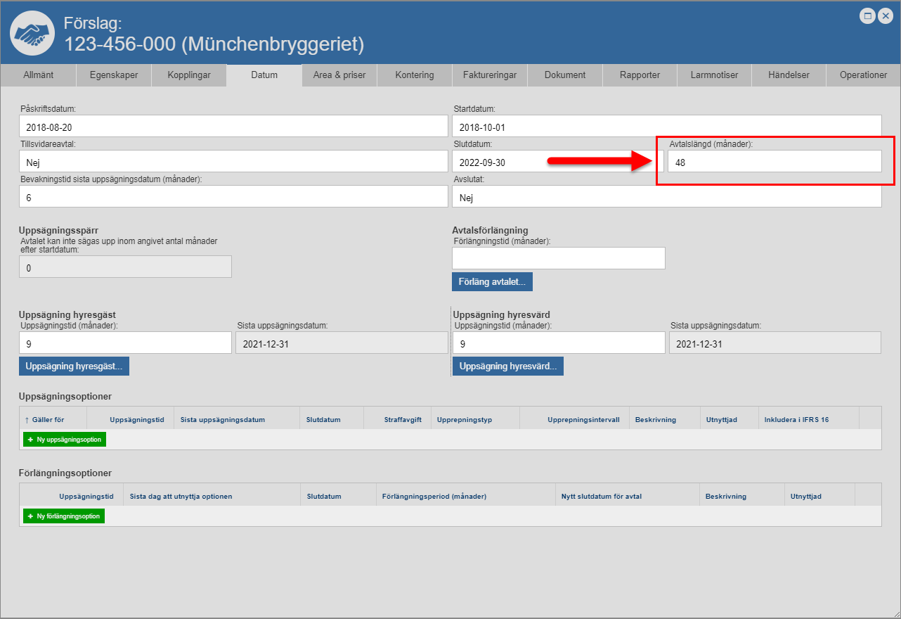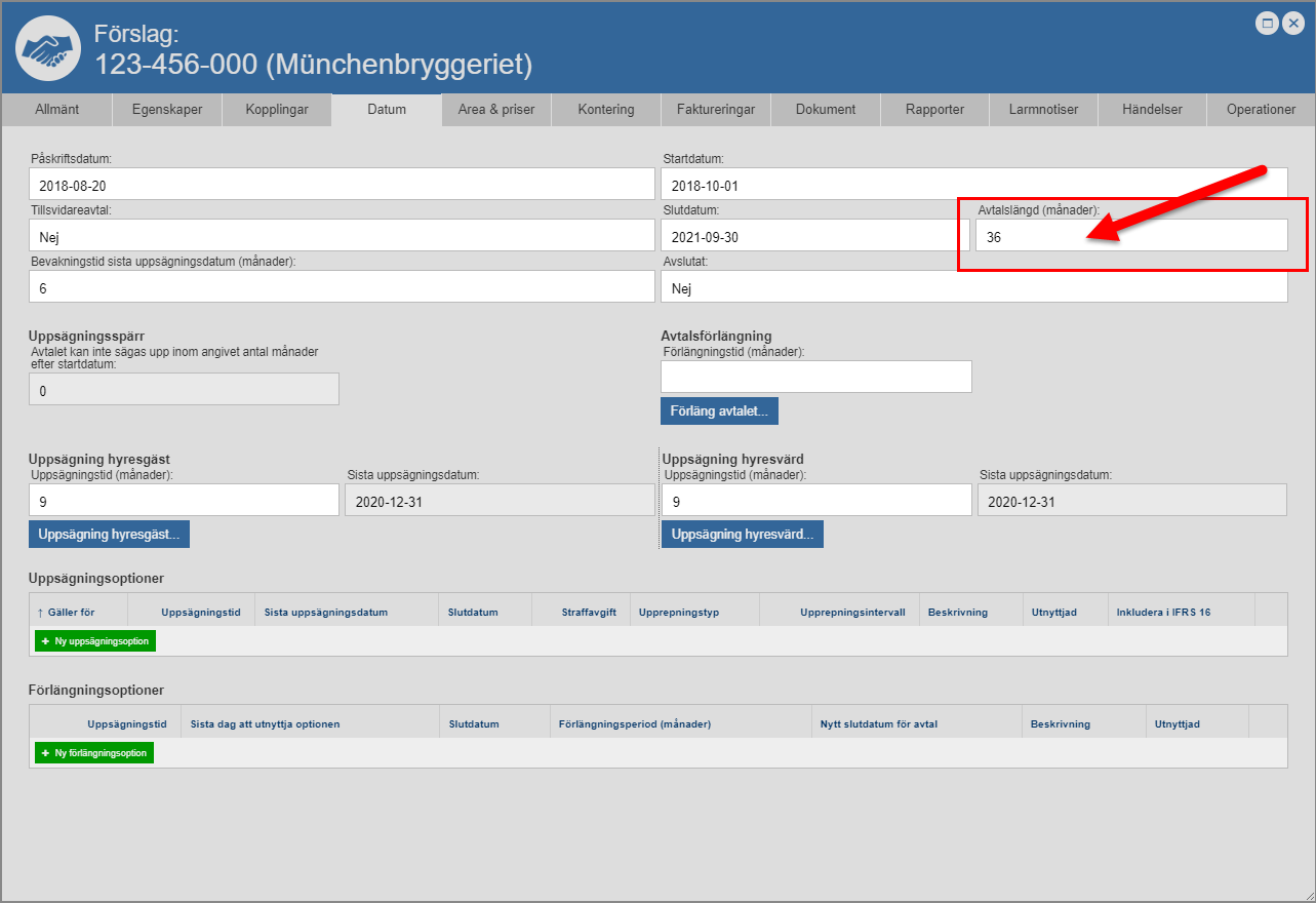 ange en avtalslängd för det avtal du arbetar med (se bilden nedan)