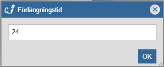 Klicka i fältet med namnet "Förlängningstid" (se den första bilden nedan). När du klickar i fältet med namnet "Förlängningstid" får du tillgång till en dialogruta med namnet "Förlängningstid" (se den andra bilden nedan).