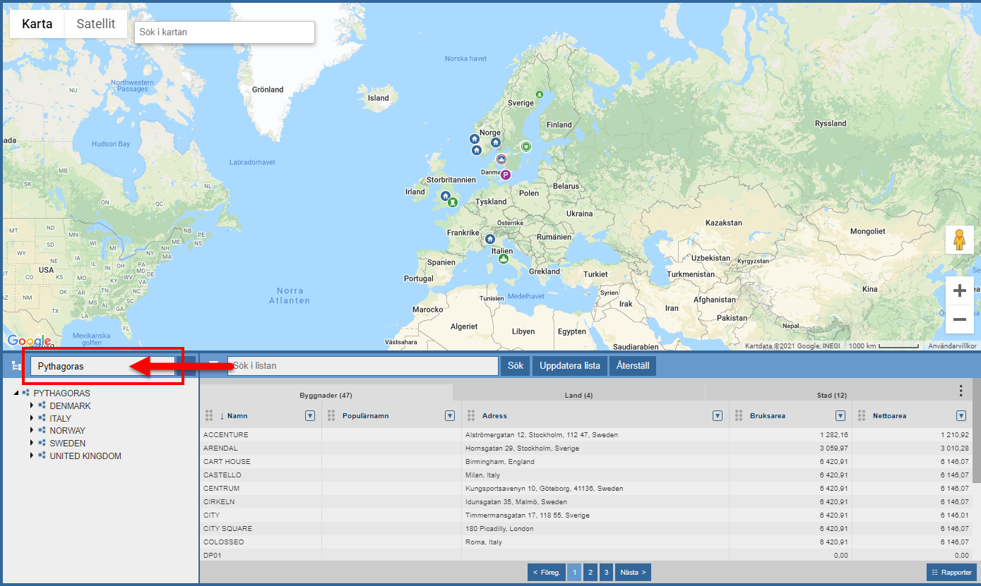 ange att det navigationsträd du skapat ska användas i Pythagoras media
