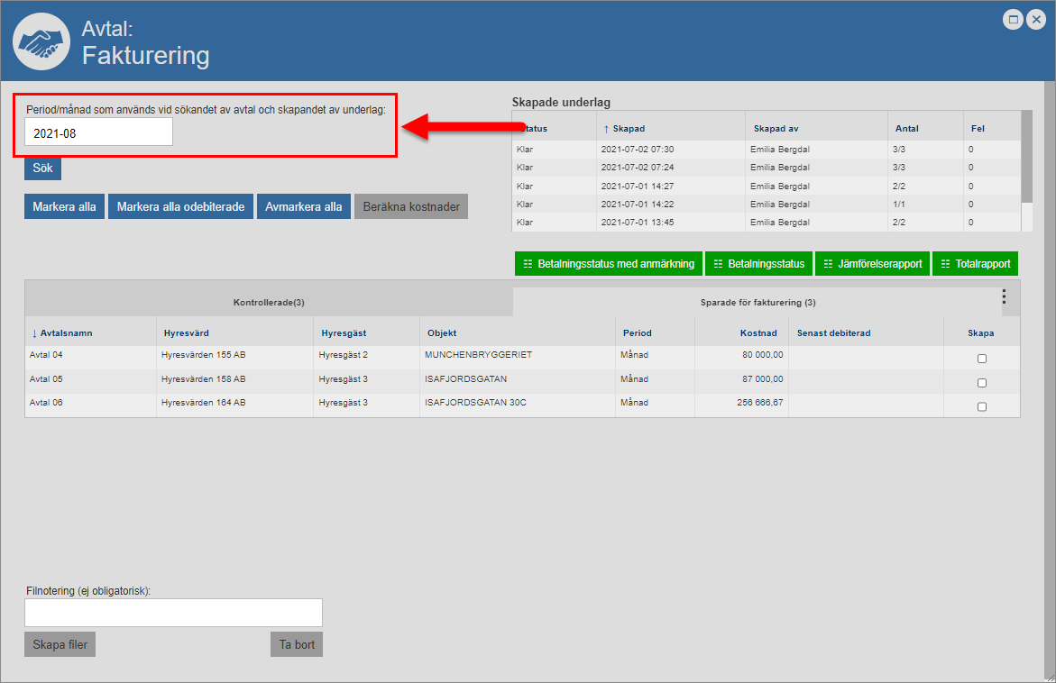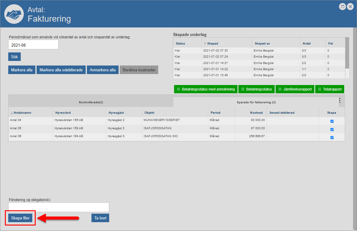 6.10.4. Skapa faktureringsfiler för ett eller fler avtal